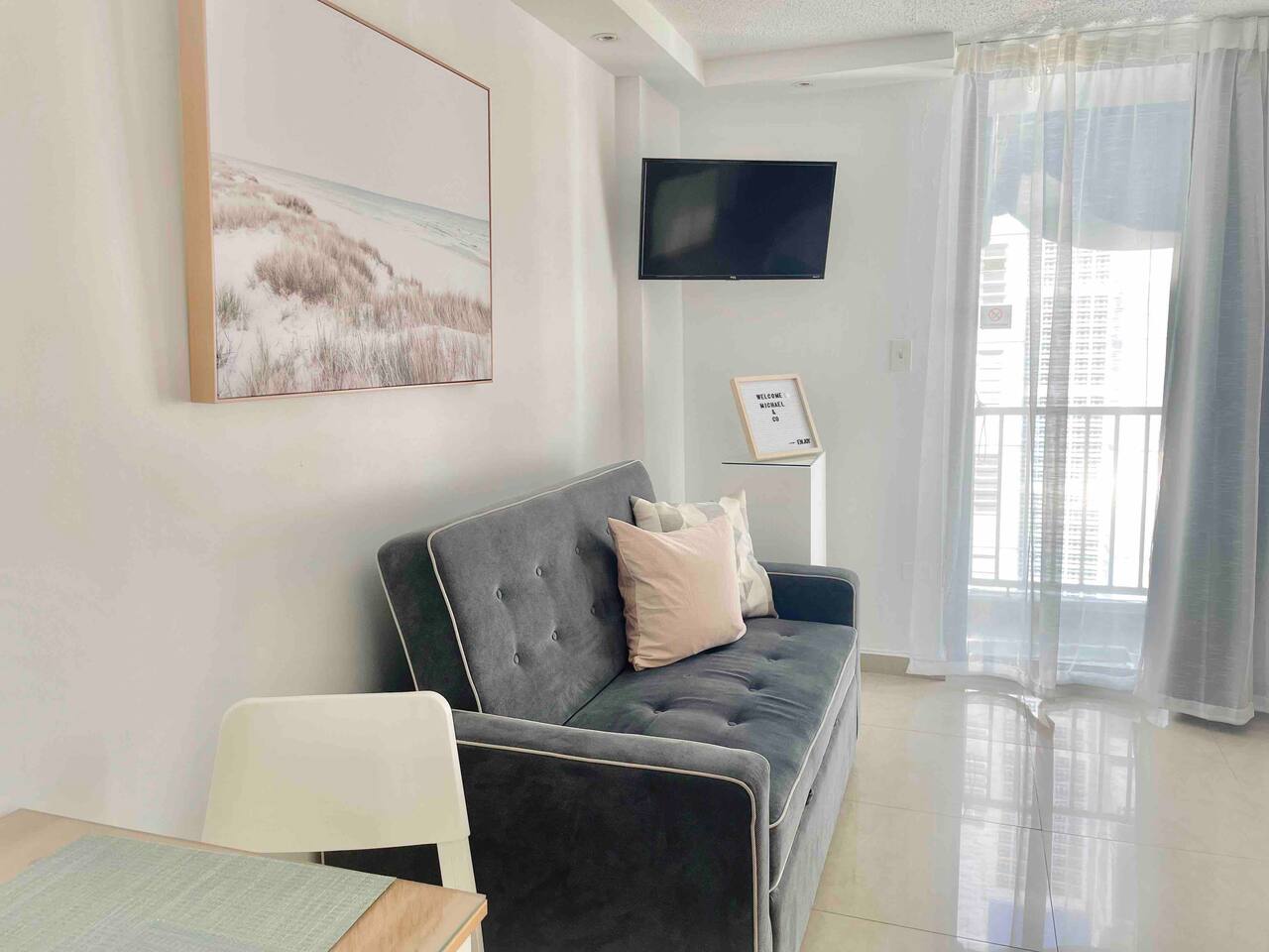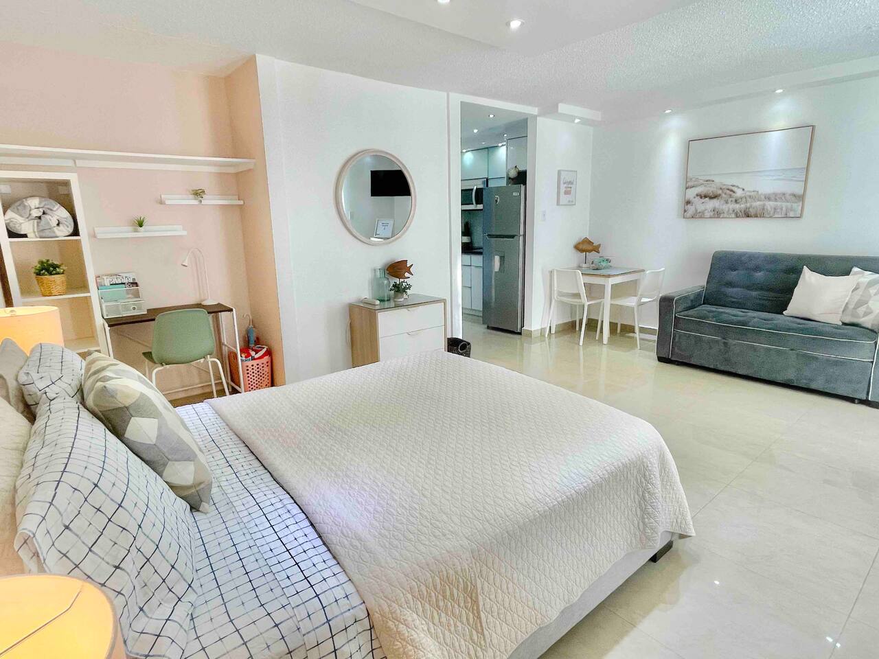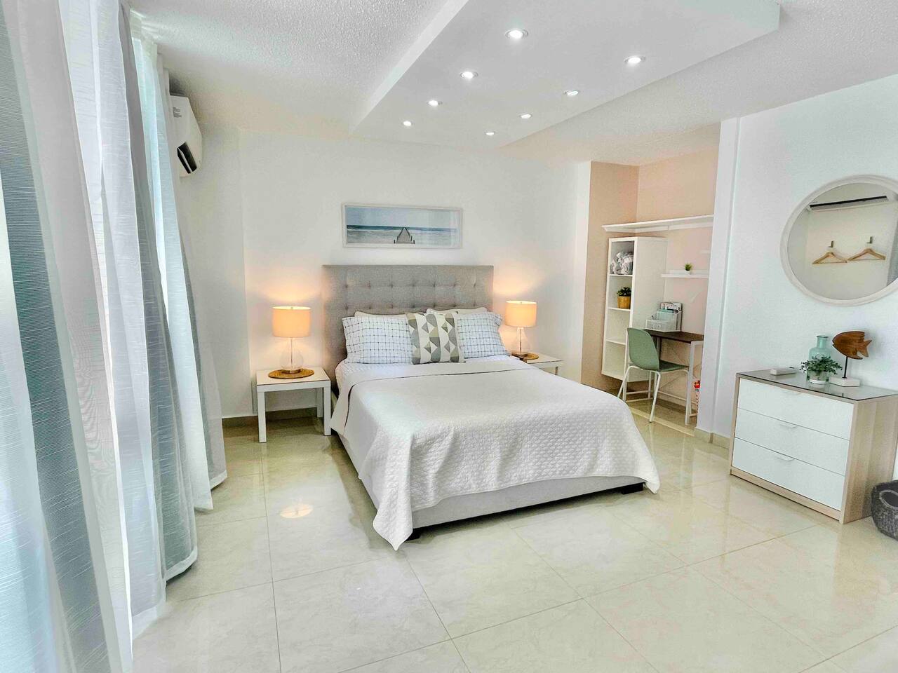 Modern apartment with relaxing beach decoration. Beach is 5 mins walking and the apartment is 5 mins from the airport. This condo has a parking spot for you and a great pool with BBQ grill and seating area. Several restaurants are walking distance. The new renovated El San Juan Hotel is at the left side of this apartment. This hotel has wonderful night activities and extravagant restaurants.